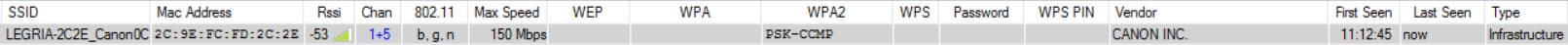 Создаваемая камерой точка Wi-Fi имеет следующие характеристики: