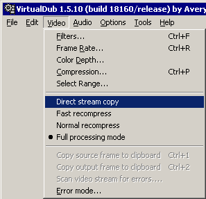 VirtualDub.video.SetMode(3); | режим: Video — Full processing mode |