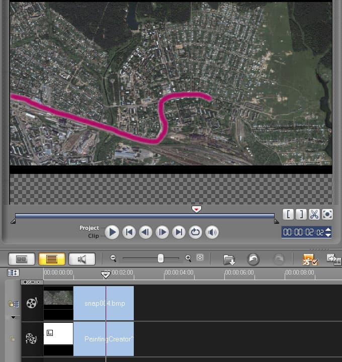 Данный рисунок можно переместить на таймлинию как отдельный клип, расположив на дополнительной дорожке. Теперь анимированная траектория станет рисоваться поверх основного видео- или фотоматериала.