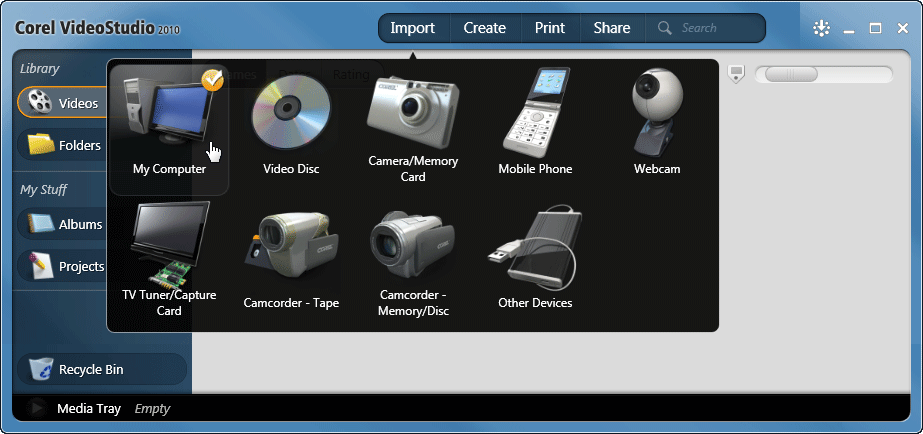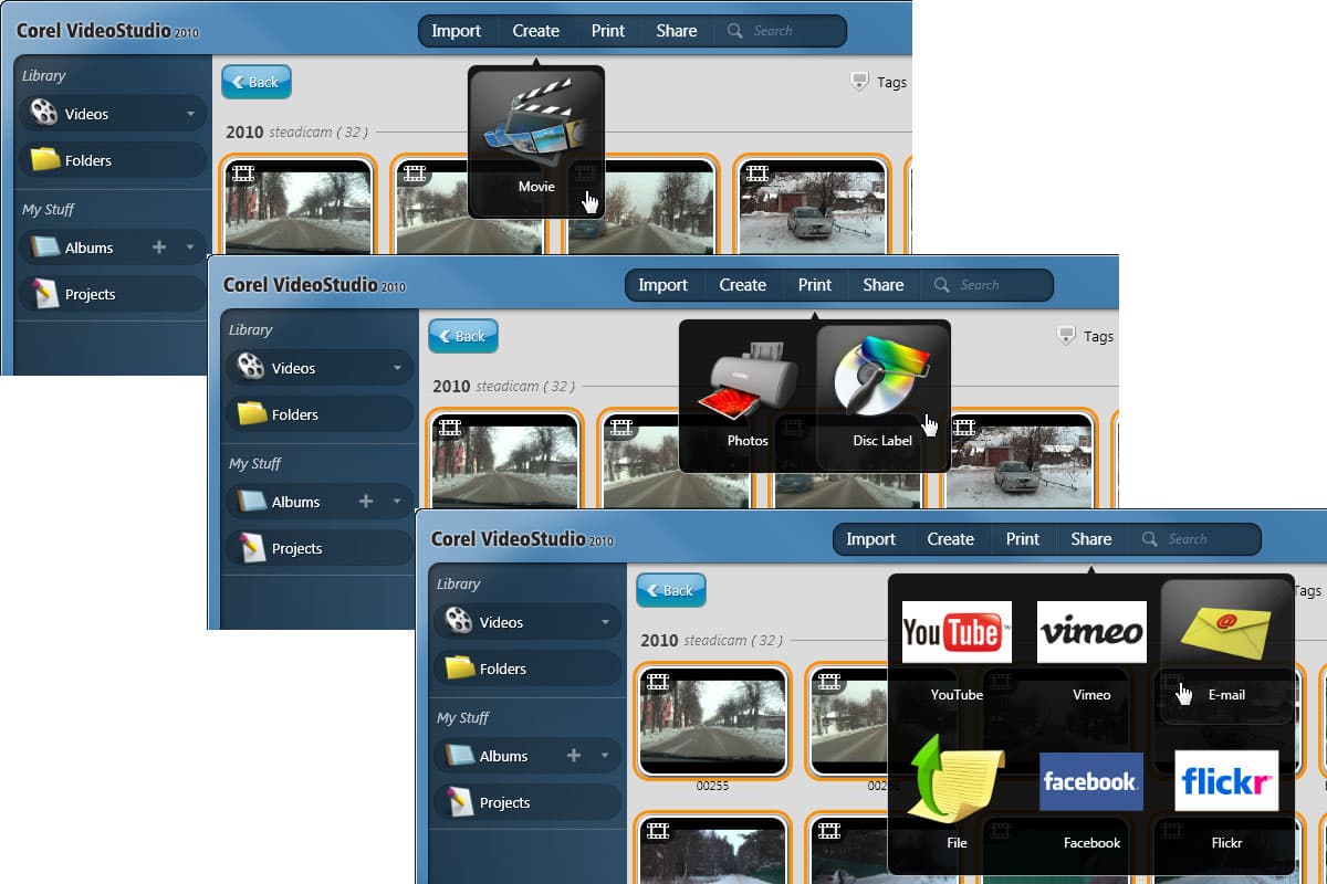 Первый из них, VideoStudio Express 2010, представляет собой этакий браузер, всплывающие анимированные панели которого выполнены в модном нынче стиле iPhone. Импорт материала в программу осуществляется со всех возможных источников.