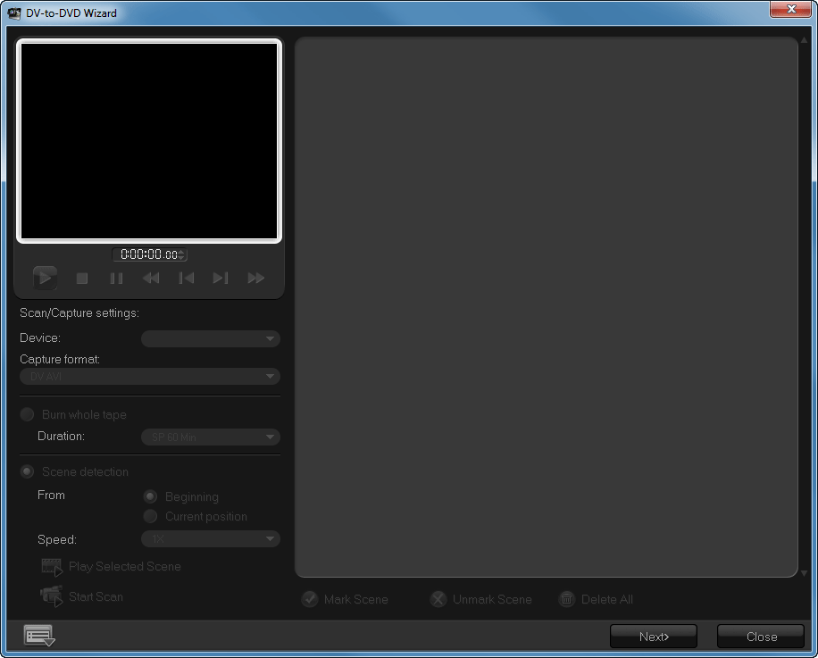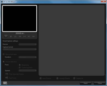 Вторая кнопка приветственной заставки, DV-to-DVD Wizard, запускает несложный модуль, с помощью которого владельцы DV-камкордера могут произвести копирование видео с ленты и его быстрое превращение в DVD-видео диск.