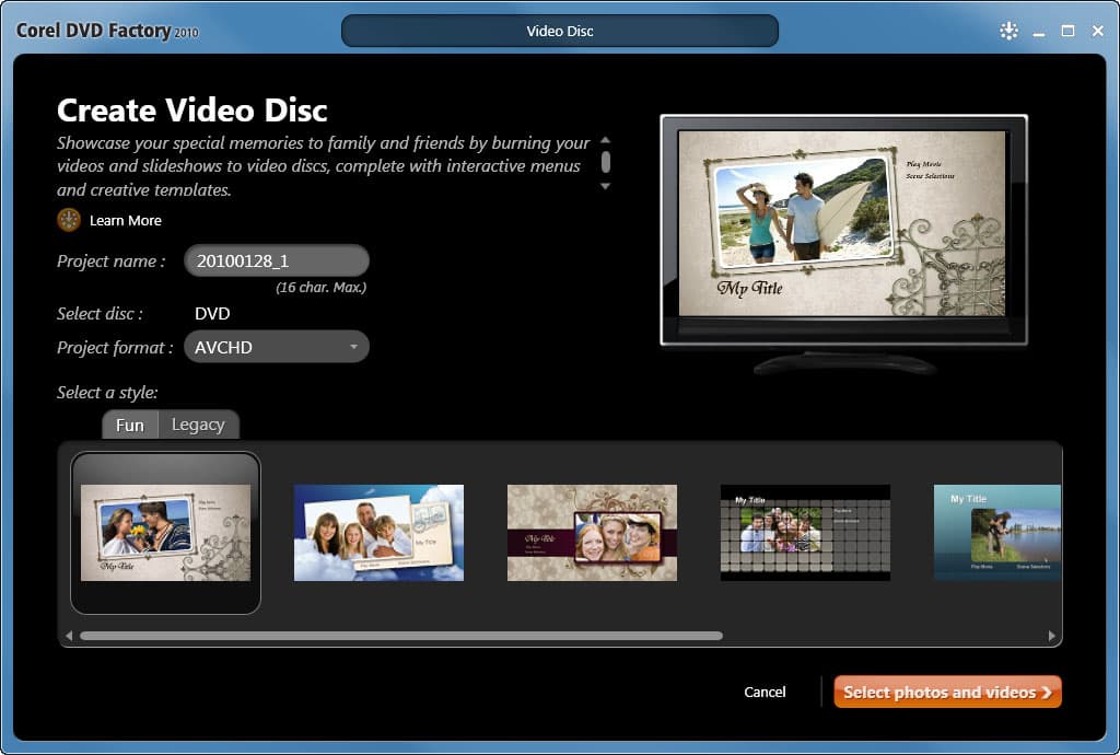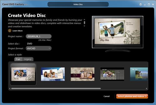 Последний пункт, DVD Factory — это несложная программа, позволяющая произвести авторинг DVD или AVCHD диска.