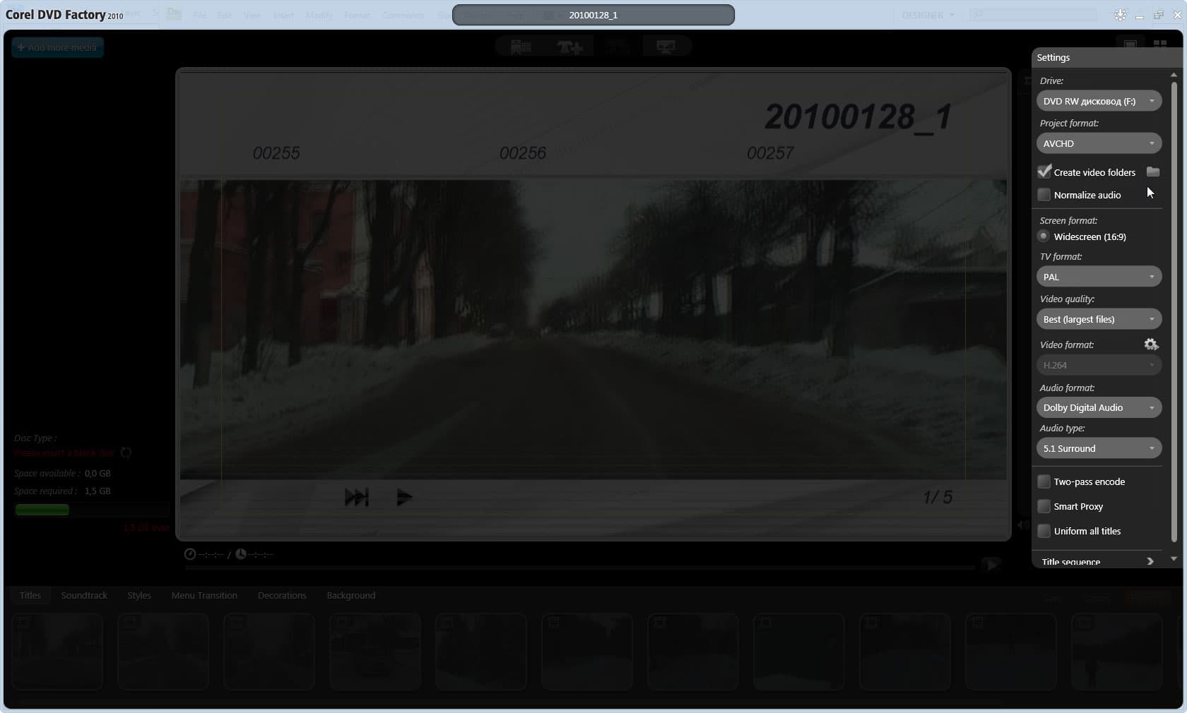 Однако, для того, чтобы создать такие диски, необходимо иметь BD-ROM со вставленным в него пустым носителем. На DVD-дисках возможно создание только лишь AVCHD-диска (изменить тип диска можно в выплывающем с правой стороны меню).