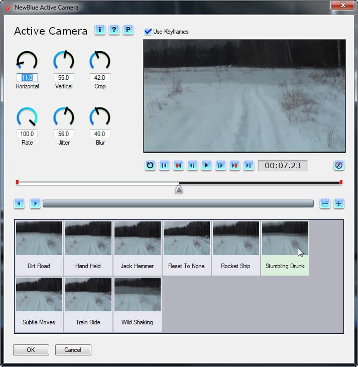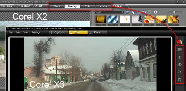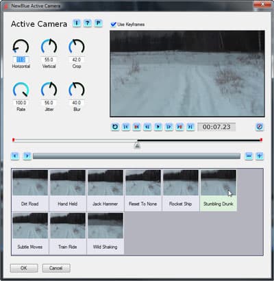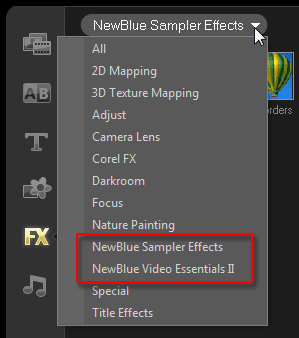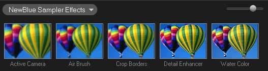 Если в прошлой версии X2 присутствовали фильтры NewBlue Film Effects, то в нынешней версии этот набор отсутствует. Впрочем, сотрудничество с известной компанией NewBlueFX не прервано. Вместо прежнего набора фильтров Film Effects программа VideoStudio теперь содержит два других набора: NewBlue Sampler Effects (основные образцы фильтров) и NewBllue Video Essentials II (набор «необходимых» фильтров).