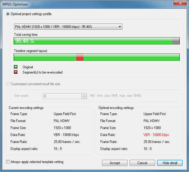 Продолжим оценку дружелюбия программы, для этого здесь имеется чертовски удобный инструмент — MPEG-Optimizer.