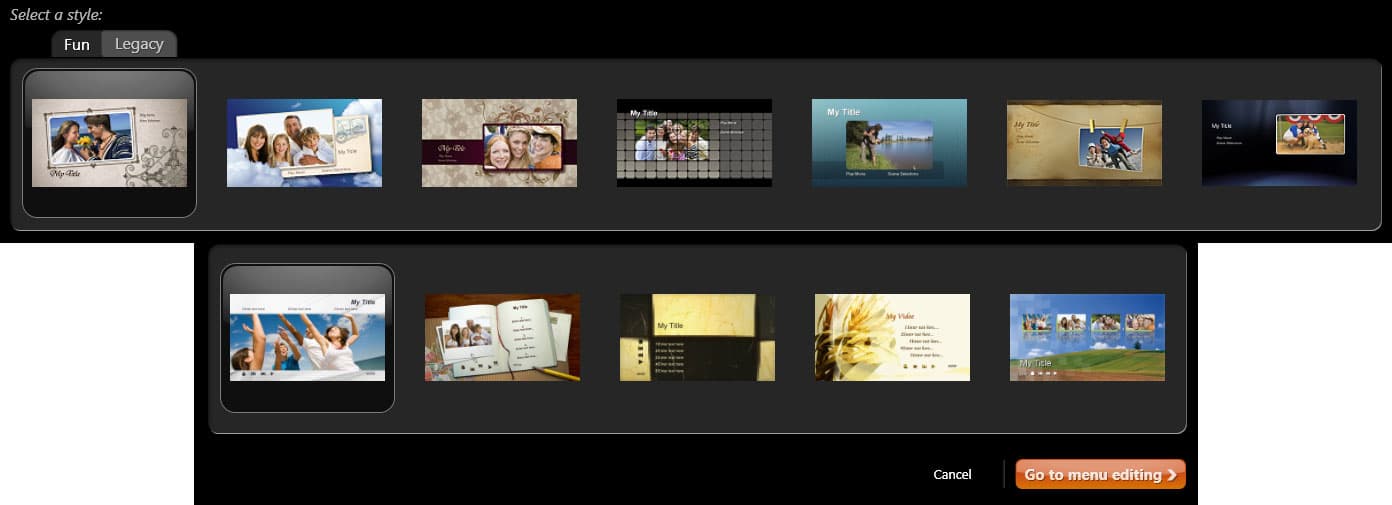 Имеющиеся 12 встроенных шаблонов оформления меню разбиты на две категории: Fun и Legacy.