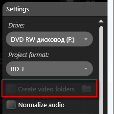 Но вот с Blu-ray такой фокус не проходит: пункт Create video folders оказался неактивным!
