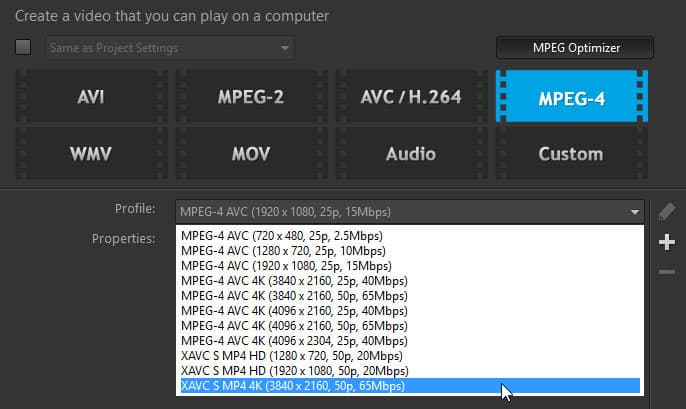 Зато настройки формата, в который программа осуществляет экспорт, содержат самые разные вариации надежного и проверенного AVC (H.264) с возможностью детальной подстройки основных параметров. Кстати, максимальный уровень битрейта здесь ограничивается вполне достаточными для Full HD 20 000 Кбит/с и 65 000 Кбит/с для 4K.