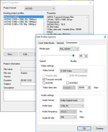 | Проект H.264 1920×1080 50p | 0:42, CPU 95% | 0:23, CPU 90% |
