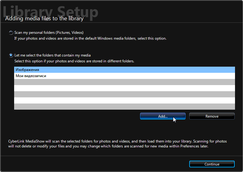 При первом запуске программа предлагает немедленно просканировать папки, где находятся фото-видео материалы, которые вы желаете обработать. Делать это сейчас необязательно, впоследствии вы можете удалять папки из коллекции или добавлять новые.