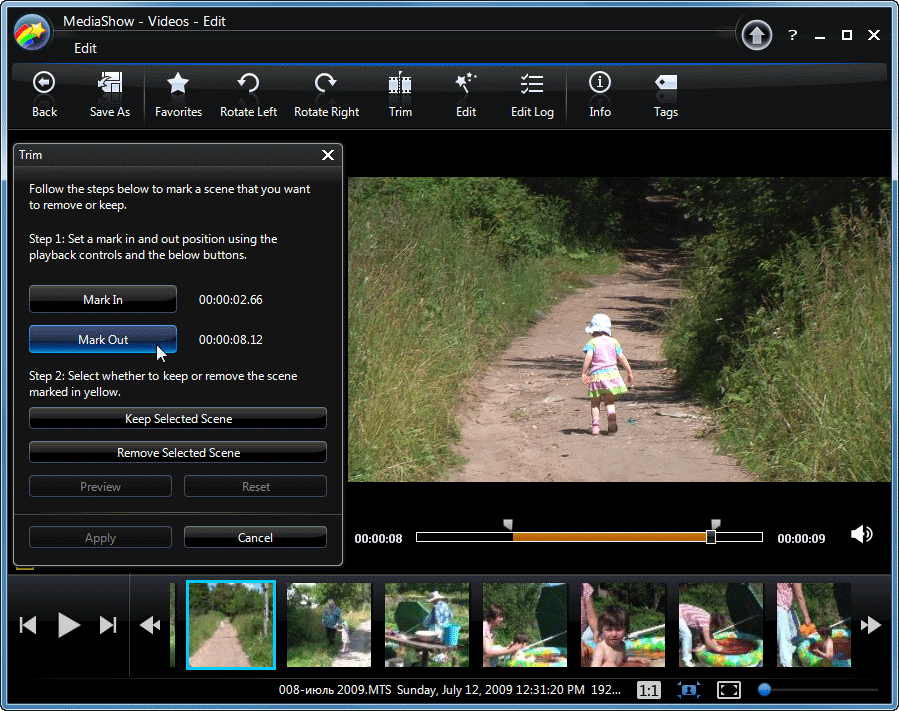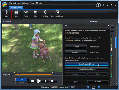 Вернёмся к нашей работе: программа предусматривает возможность простейшего монтажа видео. Модулем Trim обрабатываемые клипы подрезаются, или делятся на несколько.