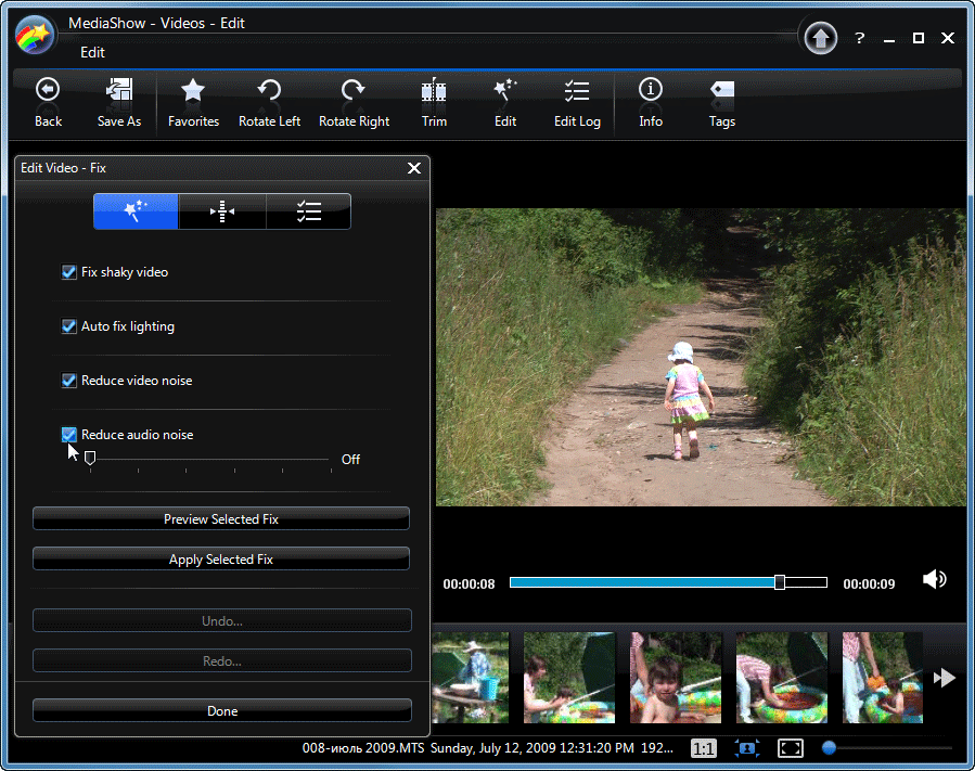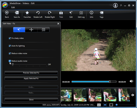 Второй модуль, носящий стандартное название Edit, включает в себя инструменты для стабилизации видео, автоматической цветокоррекции, а также очистке видео и аудио от шума. Здесь же имеется возможность ручной настройки яркости, контраста, насыщенности и баланса белого.