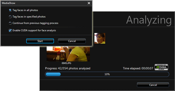 Существует и автоматический режим сканирования, в котором программа изучает все имеющиеся в указанных папках фотографии (обратите внимание — и здесь разработчики компании Cyberlink заставили технологию NVIDIA CUDA шевелить графическими мозгами).