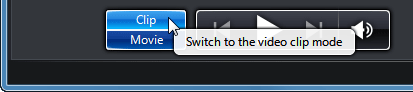А ну-ка, посмотрим, нельзя ли здесь исправить положение, чтобы не возвращаться обратно в режим редактирования видео с егоинструментом обрезки Trim? Нажмём кнопку Clip, расположенную слева от кнопок управления проигрыванием.