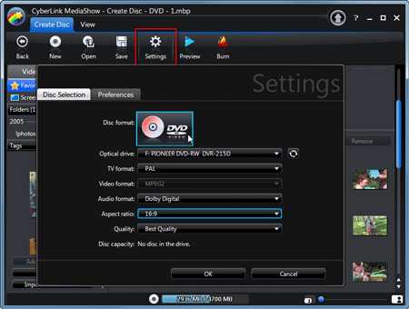 Также не прибавляют радости куцые настройки, не позволяющие создать папку с файлами DVD-видео или образ диска — программа готова провести авторинг только при вставленном в записывающий привод чистой оптической болванке.