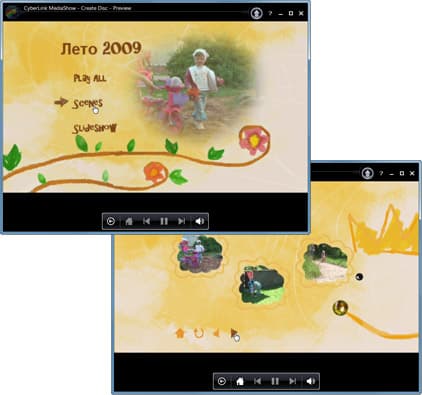 Здесь мы видим ещё одну подпрограмму, включающую все необходимые инструменты для простейшего авторинга. Выбор стиля оформления диска, импорт дополнительного содержимого как из существующих фото- видеоколлекций, так и с жесткого диска.