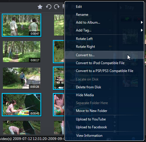 Здесь мы прервёмся для небольшого лирического отступления: в пылу исследования программы автор нажал правой кнопкой мыши на пиктограмме видеофайла (вечное правило, всегда работающее в "правильном" софте: если не знаешь, как найти нужную функцию — сделай правый клик). В появившемся выпадающем меню нашлись довольно интересные пункты: