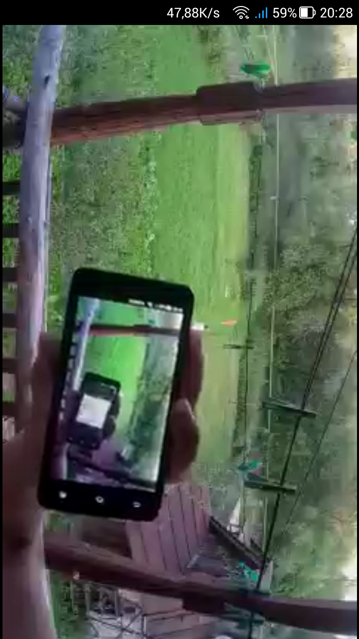 Характерная черта камеры: если во время просмотра живого видео трансляция потока с камеры на мобильное устройство осуществляется в ухудшенном качестве, то просмотр уже записанного видео производится в полном разрешении — в том, которое имеет оригинальный видеоролик. Это видно как по качеству следующего скриншота, так и по текущей скорости передачи данных, указанной в строке уведомлений смартфона.