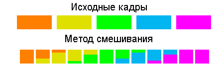 Метод смешивания накладывает друг на друга соседние кадры в нужной пропорции (на рисунке изображена степень смешивания, а не пространственная область на кадре).