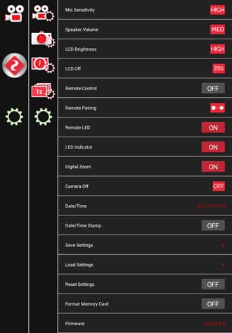 Необходимо отметить исключительно богатые настройки, доступные с мобильного устройства. Здесь можно изменить почти все параметры, которые имеются в камере. Именно почти. Дело в том, что разработчик еще не успел внести в эти настройки мобильного приложения те самые два новых пункта, касающиеся частоты видео: FPS 50 и FPS 60. Но это дело времени, вне всякого сомнения.