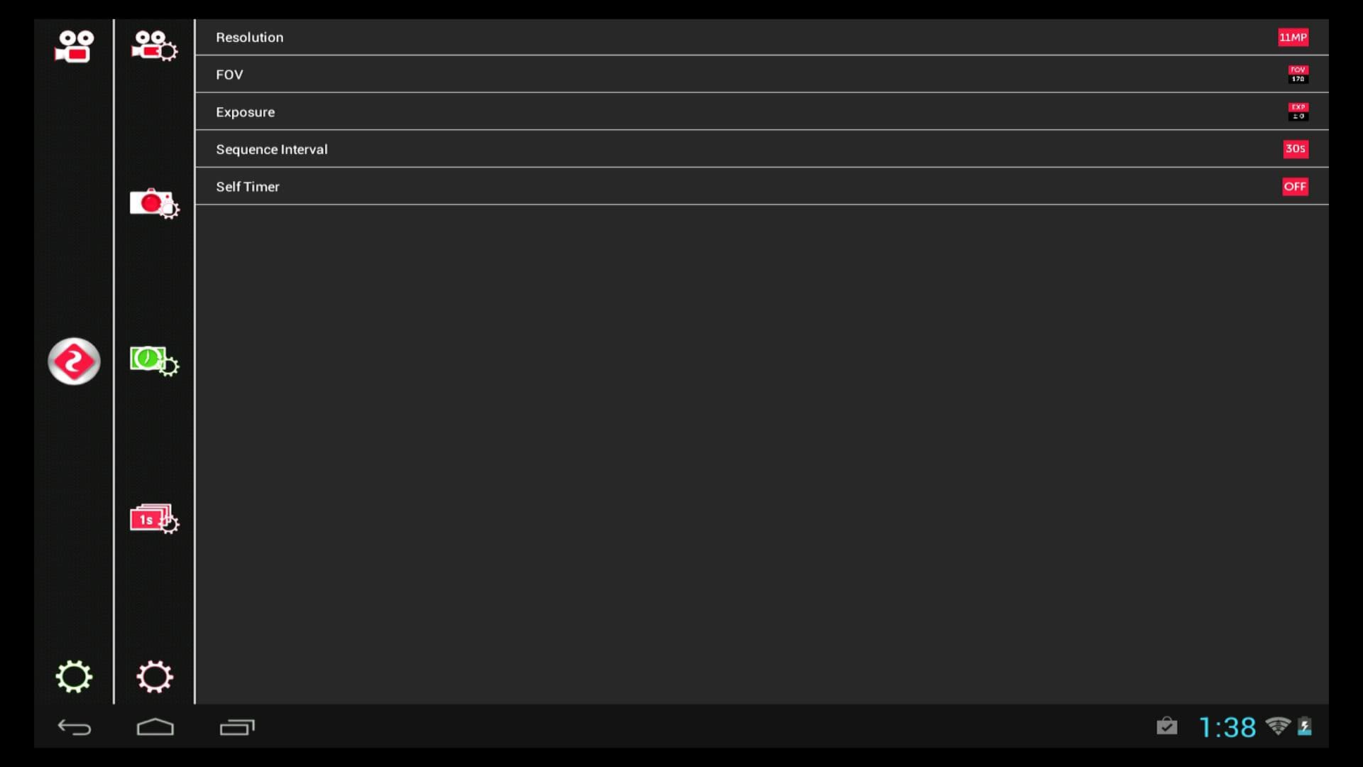 С интервальной фотосъемкой все ясно: достаточно закрепить аппарат на чем угодно, выбрать нужный режим, и нажать кнопку старта. Камера станет делать фотоснимки с заданным разрешение и частотой. Здесь доступны все три размера фотоснимков: 11 Мп, 8 Мп и 5 Мп, также доступны и три угла — 170°, 127° и 90°. Частота, с которой камера может создавать фоторяд, варьируется от 0,5 сек до 60 сек. В итоге такой съемки можно получить великолепный timelaps: