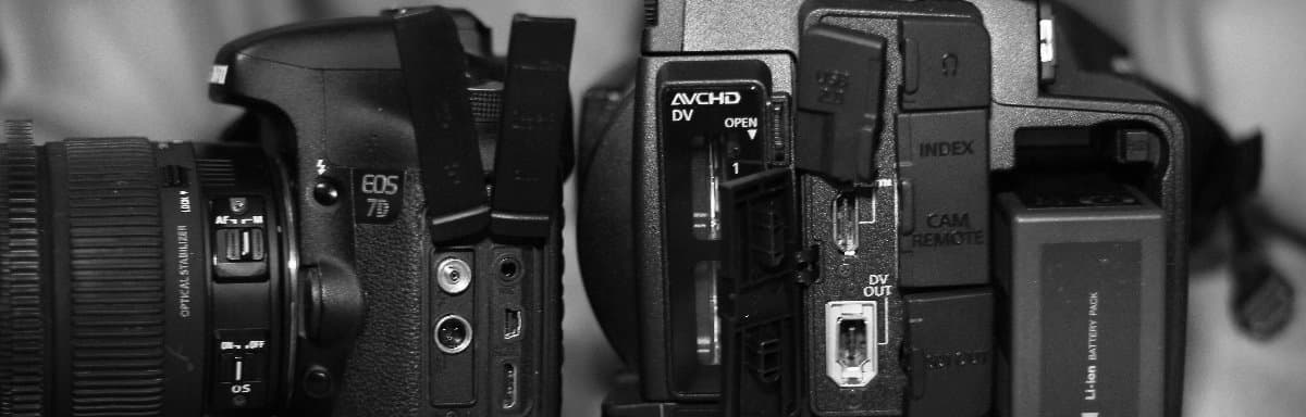 ВидеоDSLR, в отличие от видеокамеры, имеет USB, HDMI, видеовыход (PAL/ NTSC), и разъём миниджек стерео для подключения внешнего микрофона. Увы, это всё, чем богаты наши видеоDSLR. К счастью, на последней новинке Canon — 5D Mark III — наконец-то появился разъём для подключения наушника!
