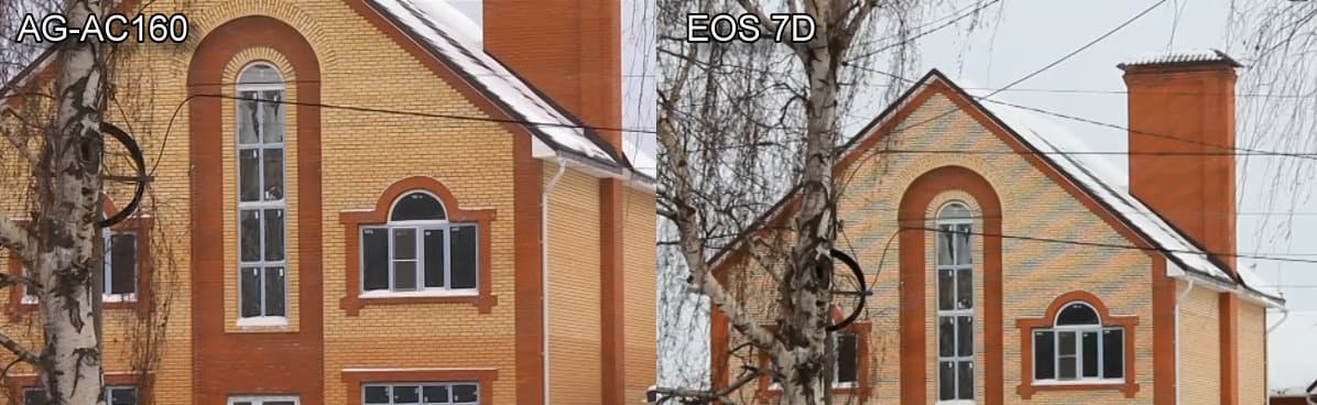 Обе системы используют для записи кодек AVC/H.264. Но видеокамера пишет его в формате BDAV (Blu-ray Video) с профилем High L4.0 и битрейтом до 21 Мбит/с. В то время как фотоаппарат сжимает видео послабее: MPEG-4 (MOV) с профилем Baseline L5.0 и битрейтом до 50 Мбит/с. Помимо явно задранного битрейта, видеоDSLR-камеры имеют общие недостатки: муар, алиасинг и роллинг шаттер. К сожалению, это накладывает определенные ограничения на видеосъёмку. Но, тем не менее, мало кого отпугивает от идеи видеоDSLR. Вполне можно избегать этих проблем: достаточно не снимать объекты, ведущие к появлению подобных дефектов.