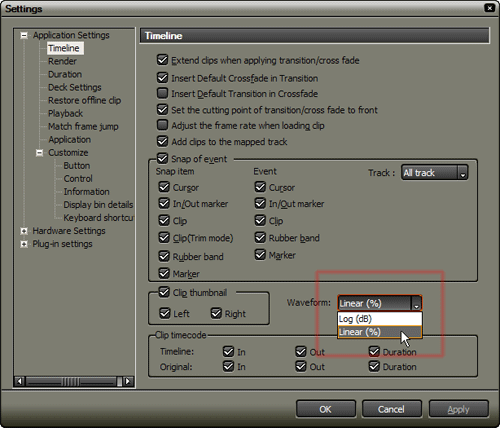 в божеский вид отображение звуковой дорожки на таймлинии, ведь Edius по умолчанию