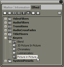 окна Effect, но также и из окна Information выделенного клипа. В этом