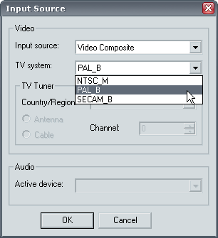 Следующий шаг — захват видео. Здесь включится модуль захвата, имеющий минимум настроек. Все, что потребуется от пользователя — это выбрать нужное устройство в качестве источника. Если никаких других WDM-устройств в системе не установлено — то и выбирать не придется.