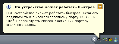 Так в чем же загадка? Для чего в комплекте находится блок питания, размерами и массой не уступающий самому аппарату? Разгадка открылась при попытке подключить устройство к одному из USB портов, находящихся на мультимедийной клавиатуре Genius SlimStar Pro (не являющихся высокоскоростными), при этом система сразу предупредила о возможных проблемах: