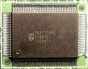 Аналого-цифровым преобразованием сигнала занят 9-битный АЦП Philips SAA7174HL. Данный чип имеет расширенный режим работы с NTSC (четырехстрочный адаптивный гребенчатый фильтр, в отличие от трехстрочного у более распространенного SAA7134HL).