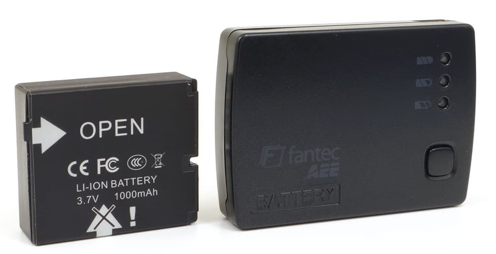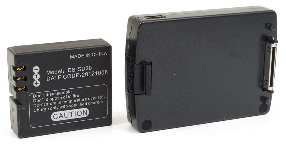 Дополнительный съемный аккумулятор оснащен портом Mini-USB для подключения зарядного устройства, тремя разноцветными индикаторами, отображающими оставшийся уровень заряда, и кнопкой, включающей режим проверки уровня заряда. Однако этот внешний аккумулятор вовсе не обязательно подзаряжать отдельно от встроенного в камеру: будучи подключенным к камере, внешний аккумулятор подзаряжается одновременно с внутренним, если к USB-порту камеры подключен источник питания.