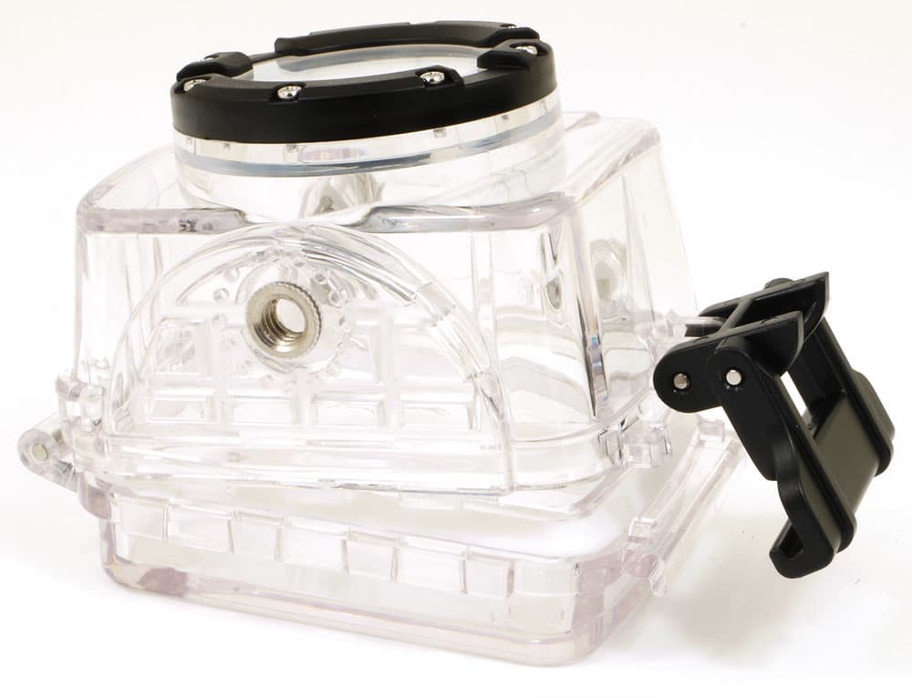 Аквабокс так же, как и сама видеокамера, оснащен стандартным резьбовым отверстием, что не может не радовать. Максимальная глубина погружения камеры в воду в данном защитном боксе составляет 60 метров; эта информация нами, конечно же, не проверялась — негде. Да и некому.