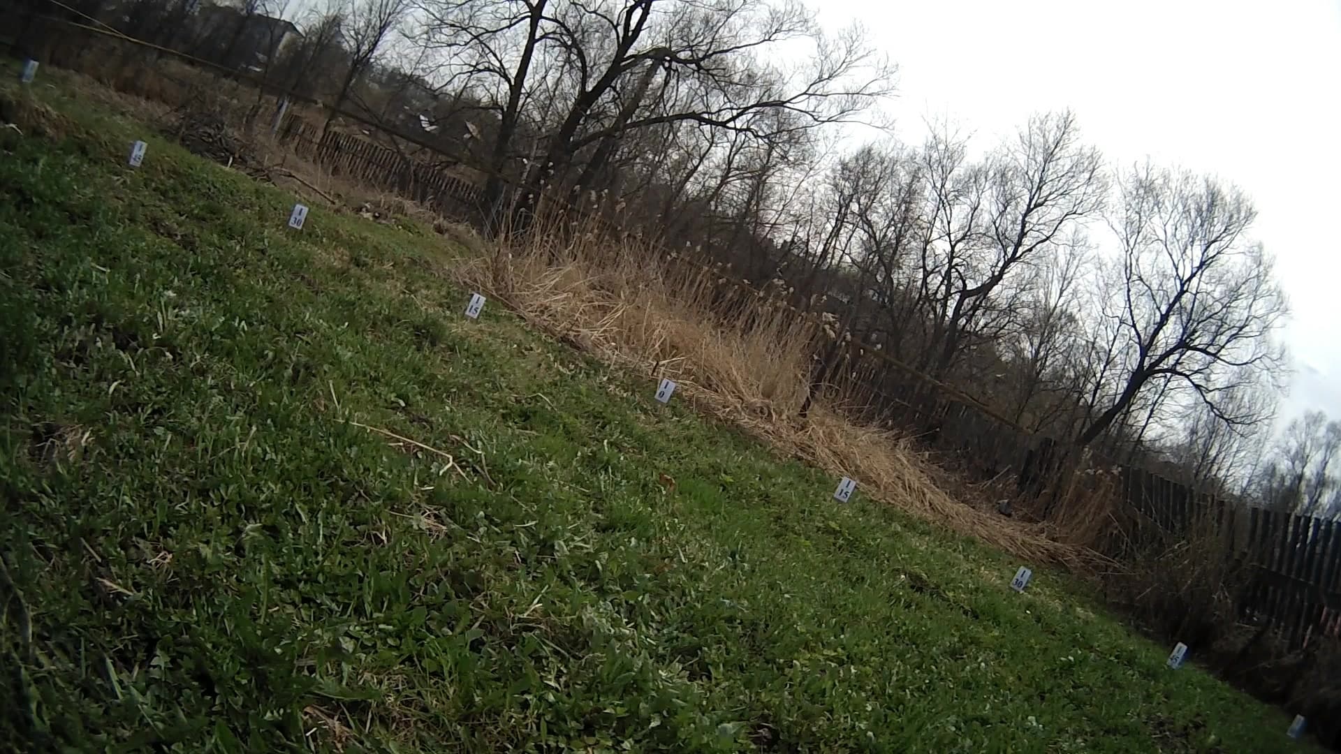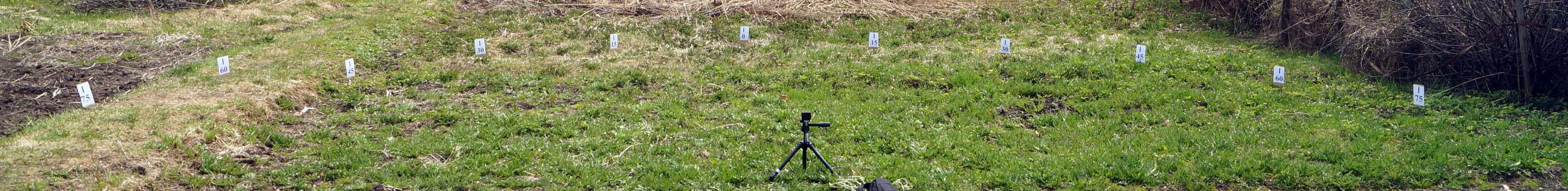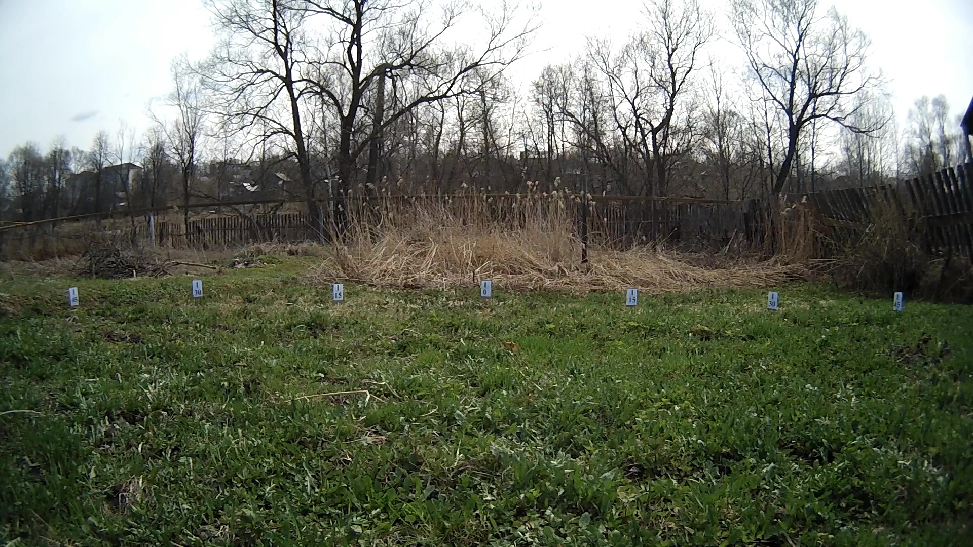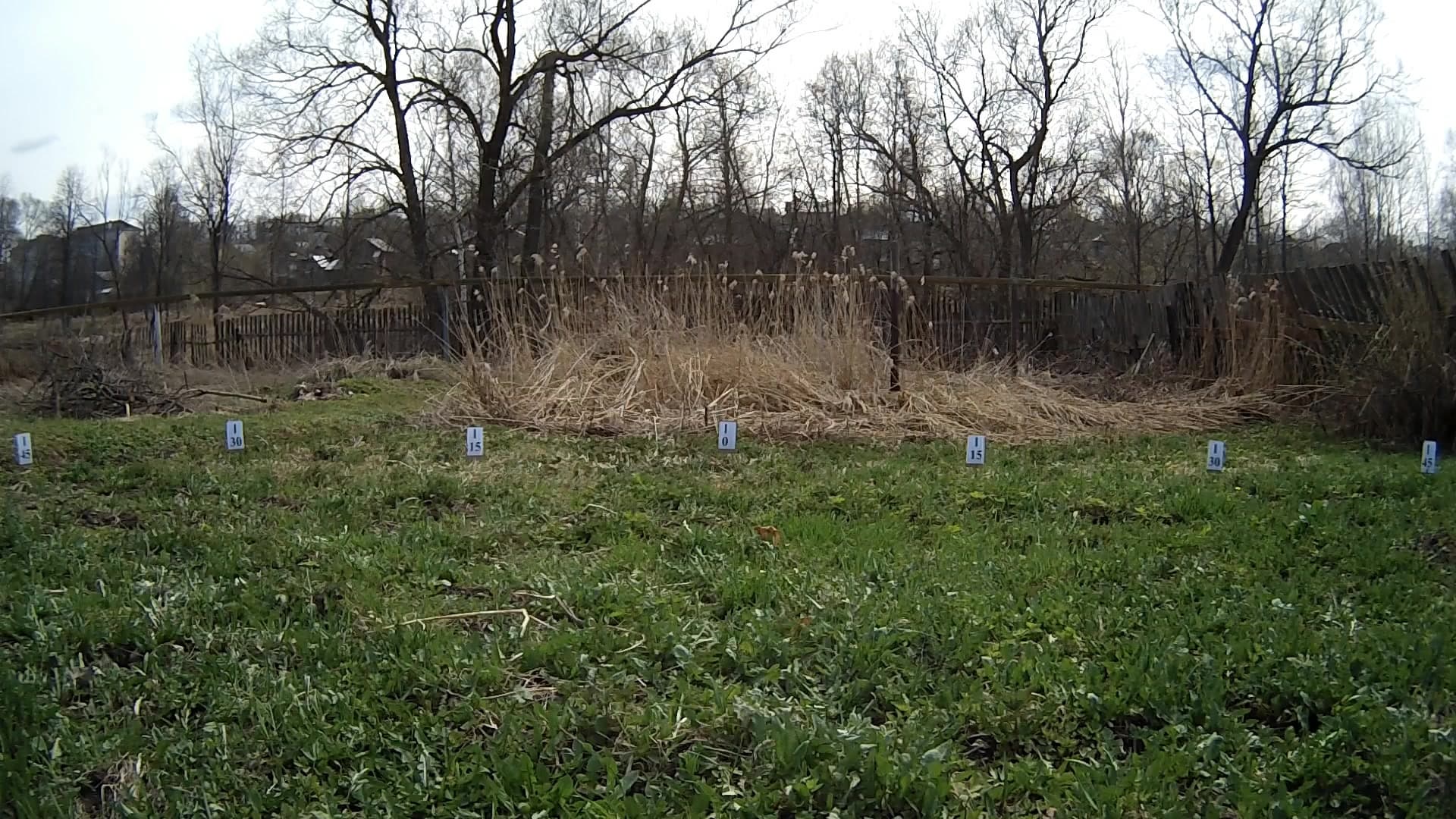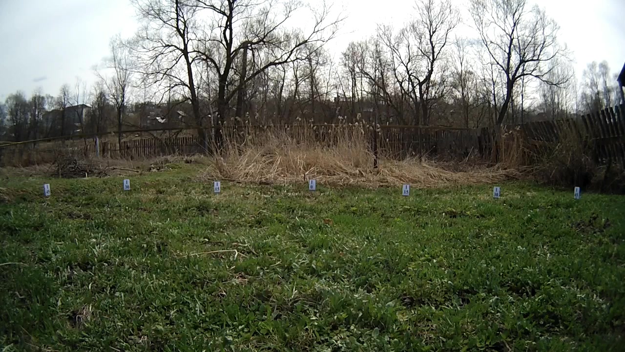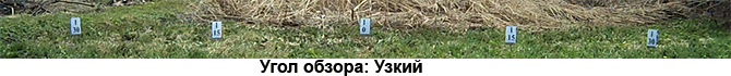 Краткое описание получившегося одноразового «тестового стенда»: в центре полукруга радиусом 5 метров установлен штатив с закрепленной на нем видеокамерой. По полукругу, находящемуся в кадре, с дискретностью 15° расставлены таблички, на каждой из которых указан определенный градус. Зачем выбран столь большой радиус — целых пять метров? А это чтобы читатель не сумел повторить данный опыт. Шутка. Все просто: чем больше расстояние, тем ниже конечная погрешность. Многократные попытки использовать другие способы изучения углов зрения камер не дали ни одного адекватного результата, виной тому разные конструкции тестируемых аппаратов вкупе с малыми расстояниями до контрольных меток. Однако и в данном случае, несмотря на пятиметровый размах, мы не сумеем получить точную до градуса цифру, хотя бы в силу ограниченного количества табличек.