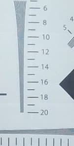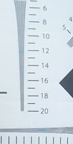 Если читатель подумал, что мы наконец-то разобрались с углами — он ошибается. Приведенные результаты тестов всего лишь показывают изменение собственно угла съемки в зависимости от выбранного режима или окружающей среды. Но как быть со вторым, не менее важным, вопросом? А именно: какой угол следует выбрать, в каком режиме предпочтительнее снимать? Ответ мы получим, изучив съемку тестовой таблицы (точнее, ее ключевой области). Данная съемка была произведена трижды, в режиме 1080 25p с широким углом, средним и узким.