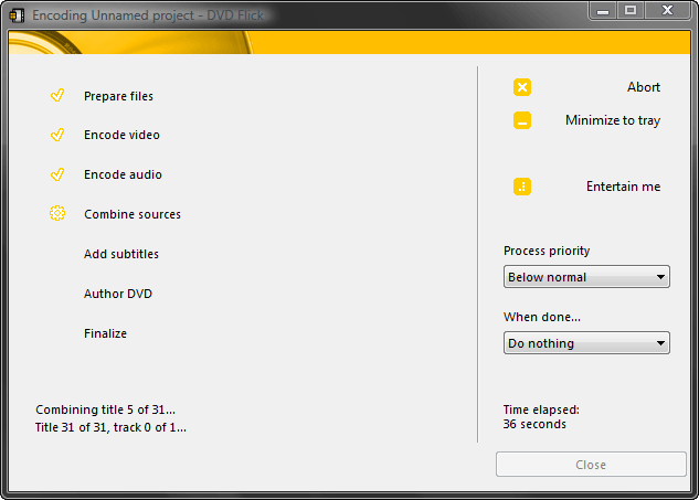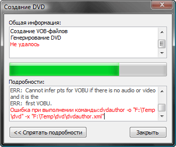 Процесс окончательного создания диска происходит довольно быстро, если, конечно, искомое содержимое отвечало требованиям стандартов DVD-Video и его не требуется перекодировать.