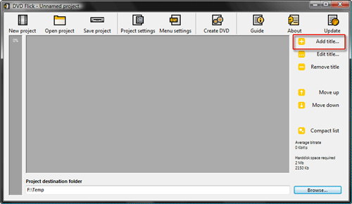 Ну хорошо, вспомним, с чего начинается работа в любой программе, обрабатывающей что-либо. Конечно же, с импорта содержимого! А вот и кнопка Add title — судя по всему, именно с её помощью проект можно наполнить материалом.
