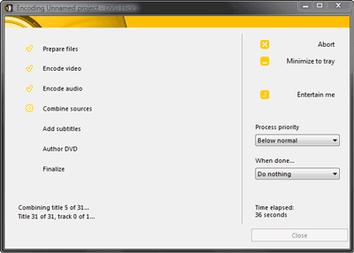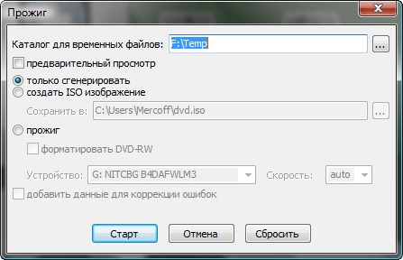 Окончательная генерация диска осуществляется быстро (опять же, при отсутствии материала, требующего перекодирования — а с этим программа ну о-о-чень не дружит).