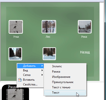 По окончанию этой операции вы увидите, что миниатюры видеокадров в созданных кнопках изменились — теперь каждая кнопка отображает тот момент времени фильма, переход к которому осуществится по нажатию данной кнопки. Теперь вы можете добавить каждой кнопке надпись и некоторые другие геометрические элементы.