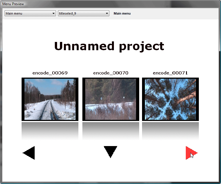 Как видим, ссылки на каждую сцену программа расставила автоматически, нам же не пришлось присваивать каждой миниатюре ссылку на тот или иной видеофайл. Меню работает без ошибок и нареканий, впрочем, оно настолько простое, что ошибкам тут взяться просто неоткуда.