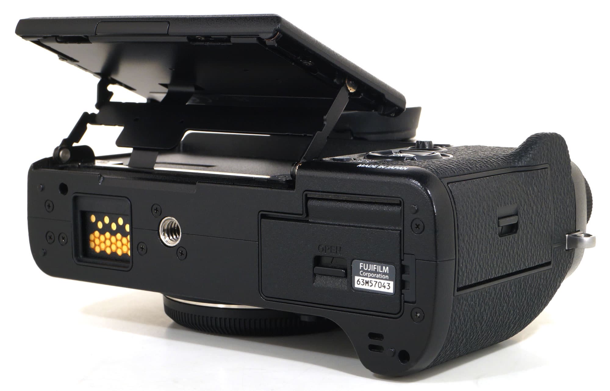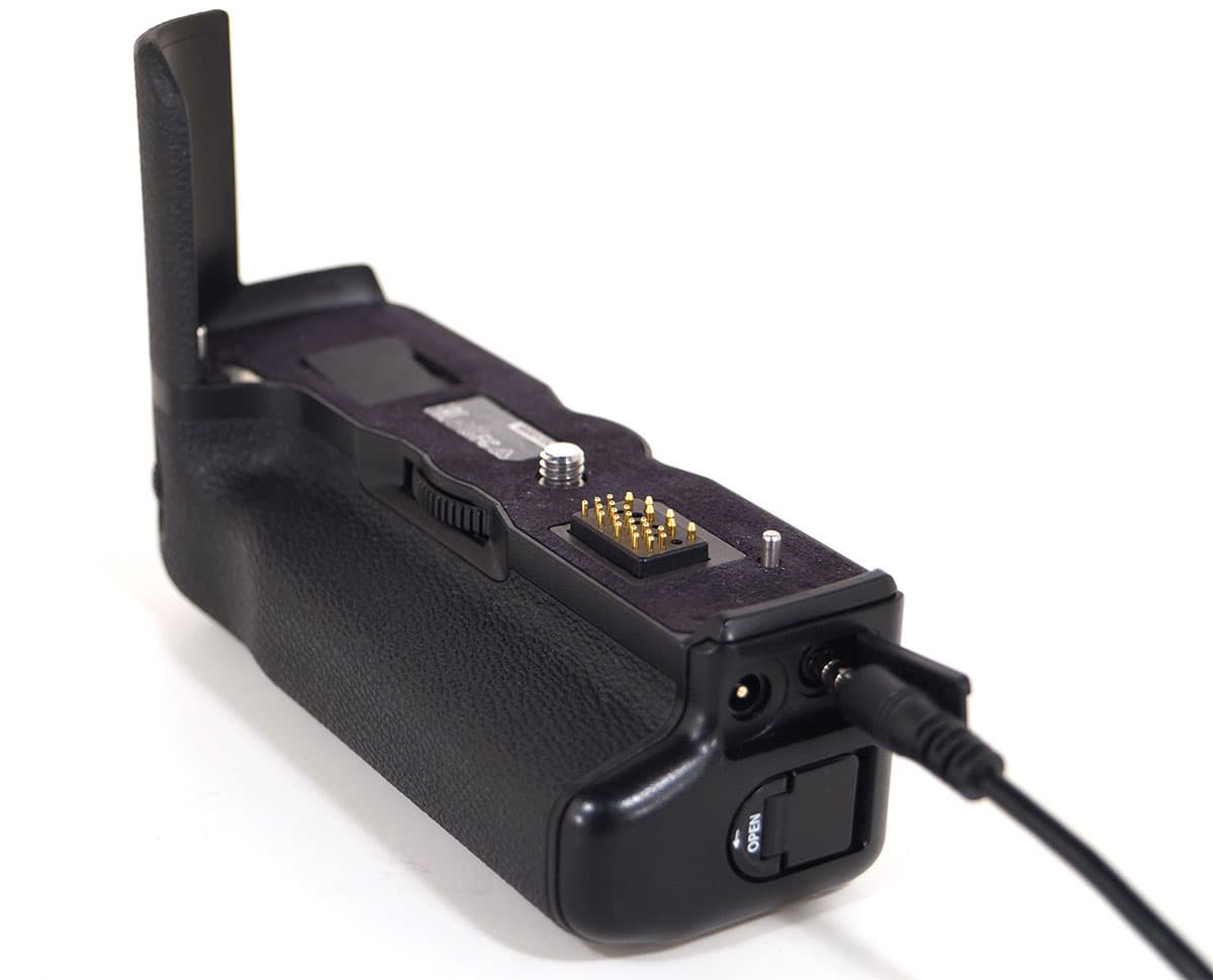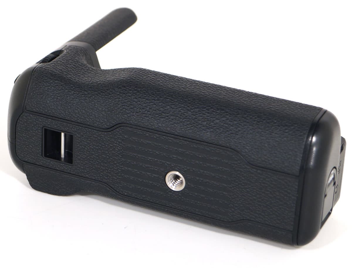 В нижней части корпуса находится разъем для подключения к камере фирменного аксессуара — батарейной рукояти VPB-XT2. Если рукоять отсутствует, разъем следует прикрывать резиновой заглушкой. Одно плохо — эту заглушку нетрудно потерять. Точно так, как она потерялась у нас во время тестирования, зацепившись, наверное, своим язычком за стенки тесного кофра (правда, впоследствии эта заглушка нашлась, но, как и в известной легенде о серебряных ложках, осадочек остался).