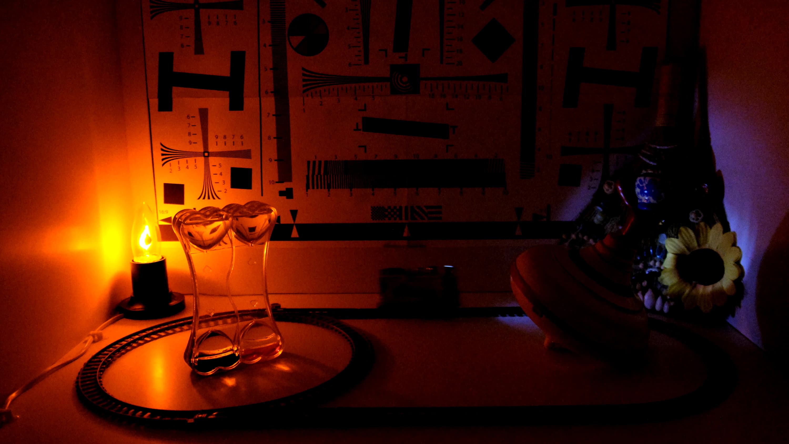 Раз уж мы привели видео, снятое в потемках — пусть и с довольно ярким источником света — перейдем к съемке в условиях недостаточной освещенности. Обычно мы преследуем одну-единственную цель: выяснить пороговое значение чувствительности (ISO для фотокамер, dB для видеокамер), при котором картинка начинает «шуметь». Съемка проводится с использованием штатива, при каждом следующем дубле значение ISO увеличивается. Прочие параметры, влияющие на экспозицию (диафрагма, выдержка) выставлены на свой предельный максимум.