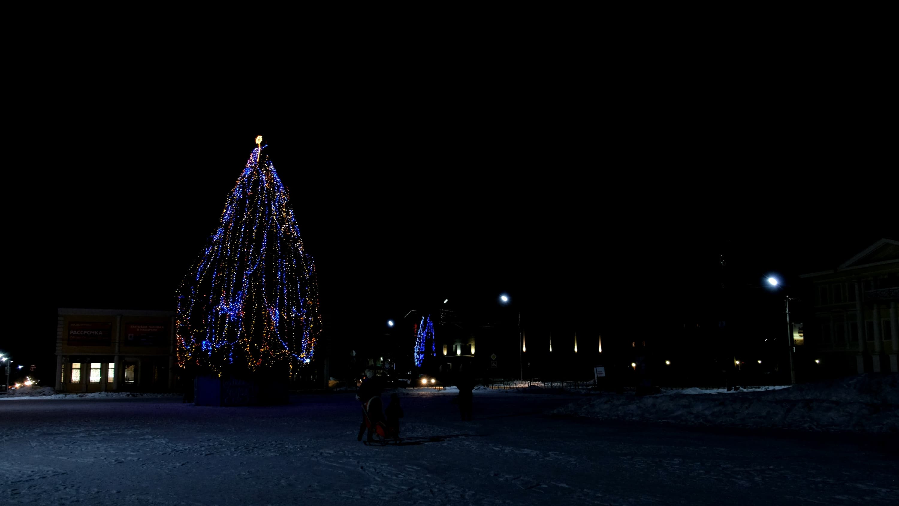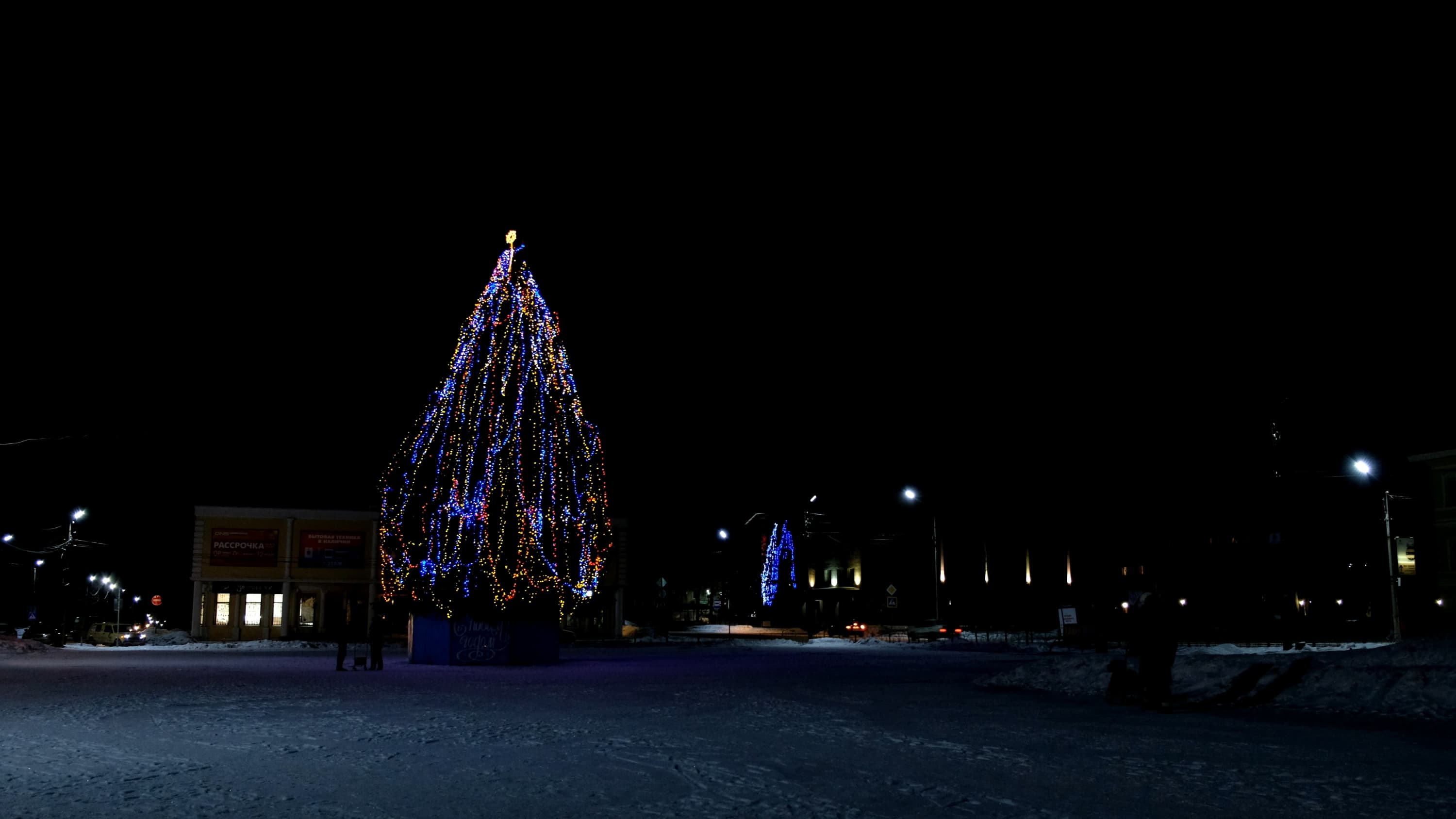 Изучение результатов показало, что приводить съемку, сделанную при чувствительности ниже ISO800, не имеет никакого смысла — это просто черные кадры с яркими фонарями-точками. Также очевидно, что автоматика в данном случае выставляет максимально возможную чувствительность ISO12800, словно пытается сделать из ночи если не день, то хотя бы вечер. Что касается шума — видно, как намек на зернистость появляется при усилении ISO6400. Однако заметить это довольно сложно, поскольку в камере работает система шумоподавления. Здесь самое место для проверки эффективности этого шумоподавления. Но увы — мы помним, что функция изменения агрессивности шумодава работает только в фоторежиме, при видеосъемке она недоступна.