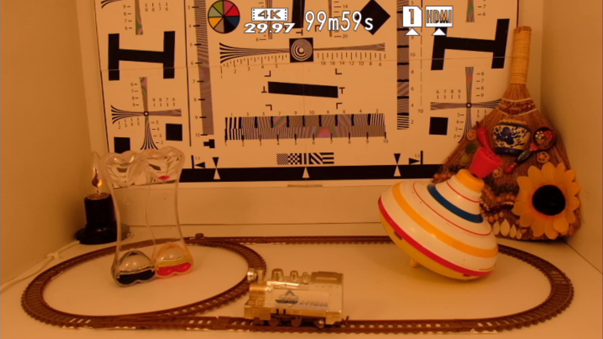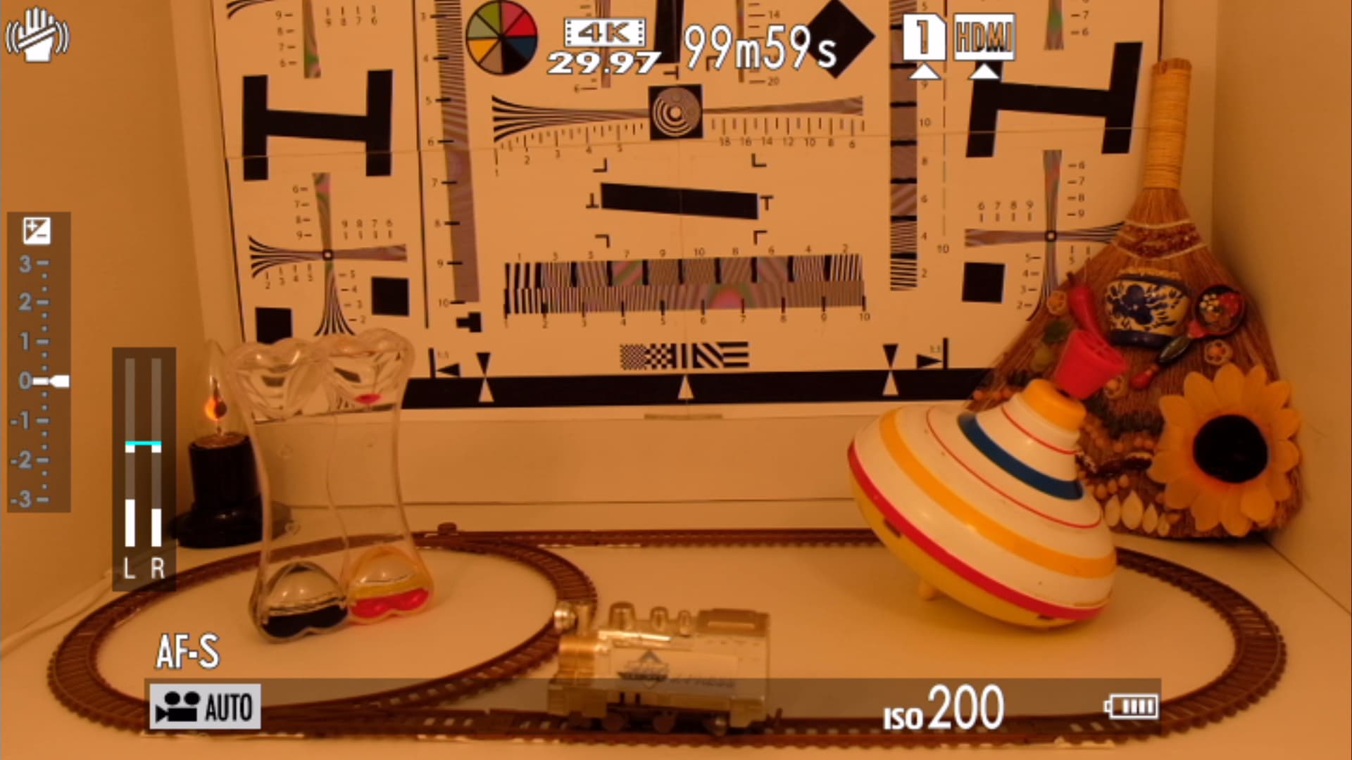 Пока же придется ограничиться чисто визуальным подтверждением: действительно, при подключении камеры к 4K-телевизору и активации этого третьего пункта, картинка, подающаяся на дисплей, становится неконтрастной и ненасыщенной. Что, собственно, и дает возможность «рулить» цветом и светом в гораздо более широких диапазонах, чем те, которые предоставляет готовая к просмотру стандартная видеозапись, производимая на карту памяти. Помимо голых слов, приведем фотоснимки экрана 4K-телевизора, на которых можно отчетливо видеть эту разницу.