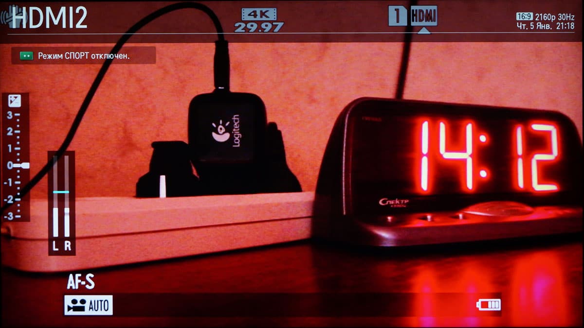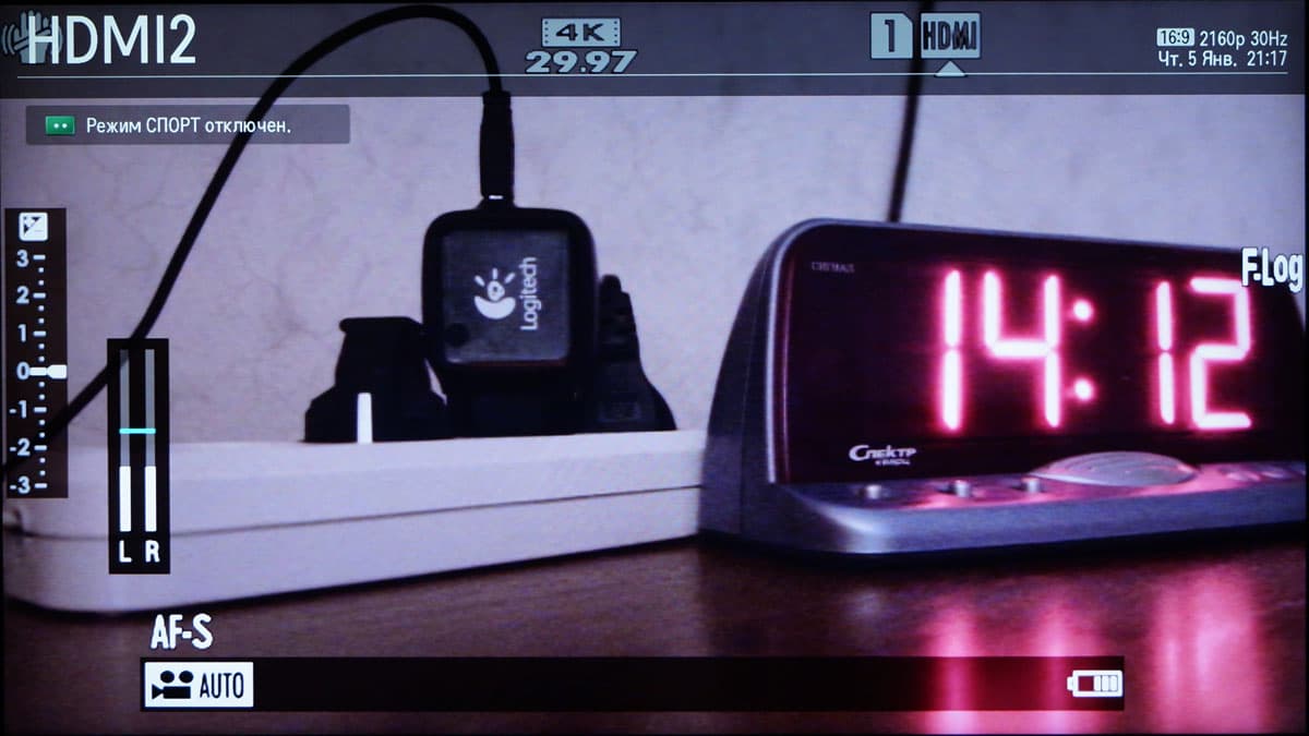 Таким образом, получить видео 4K с HDMI-выхода камеры можно только без одновременной записи этого видео. Либо — либо. С третьим режимом еще сложнее. Как указывается в руководстве пользователя, сигнал HDMI в третьем режиме транслируется с цветовым профилем F-LOG, что идеально подходит для последующей тонкой цветокоррекции. Теперь вопрос: чем захватить такой сигнал? Конечно же, устройством захвата 4K. Имеющиеся у нас устройства захвата ограничены размером кадра Full HD, но мы обязательно постараемся отыскать 4K-«железку» для последующих экспериментов с камерами, имеющими аналогичную функциональность.