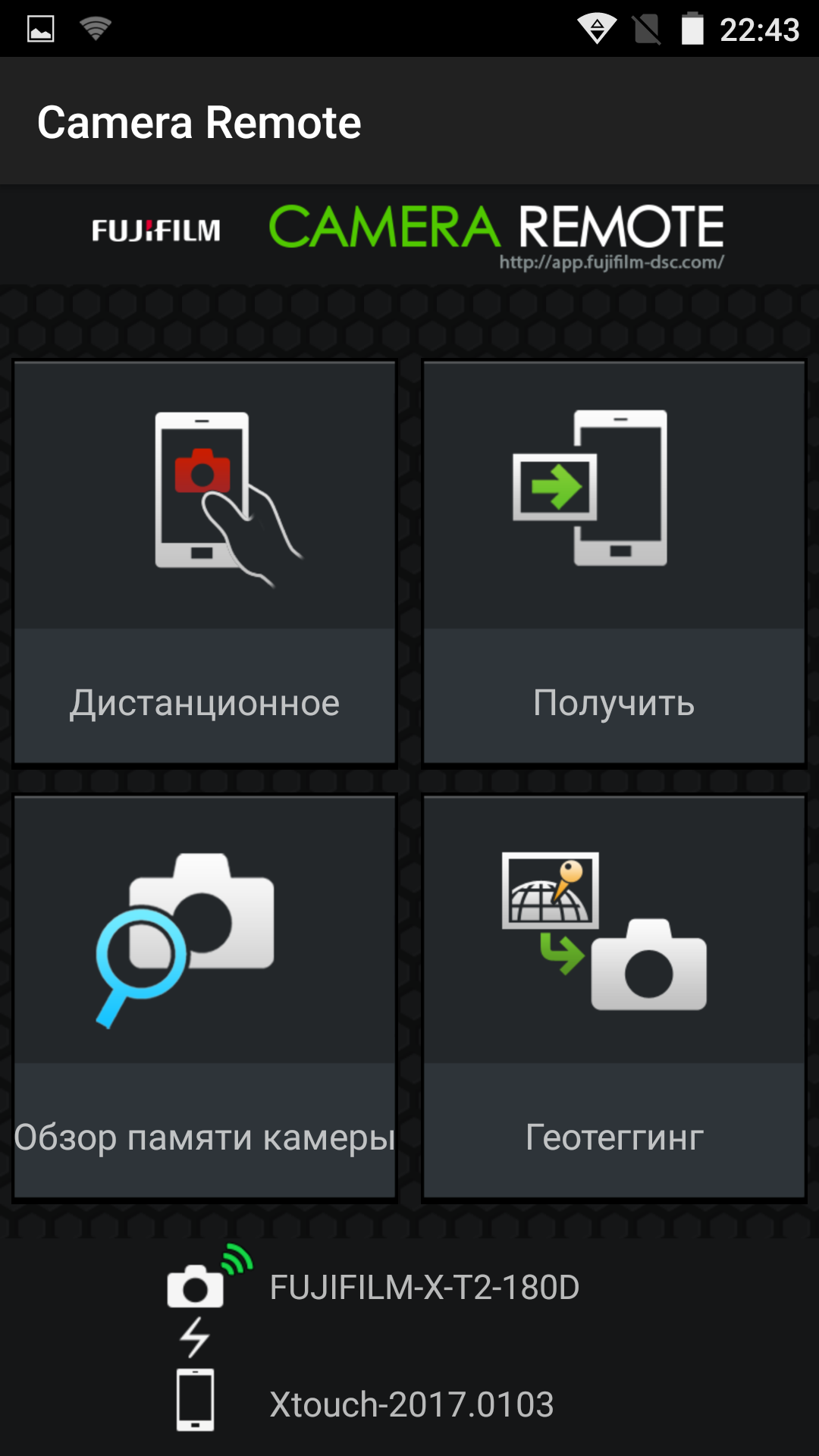 Функции адаптера Wi-Fi, который встроен в фотоаппарат, описаны на специальной фирменной страничке. Здесь можно отыскать два приложения, для мобильных устройств и для ПК. Программа для смартфонов и планшетов называется Fujifilm Camera Remote. Существует две версии этой программы, для iOS и Android. Из требований приятно удивляет требуемая версия Android — всего-то 2.3 или более поздняя. Таким образом, снимается необходимость в задействовании современных и дорогих мобильных устройств.