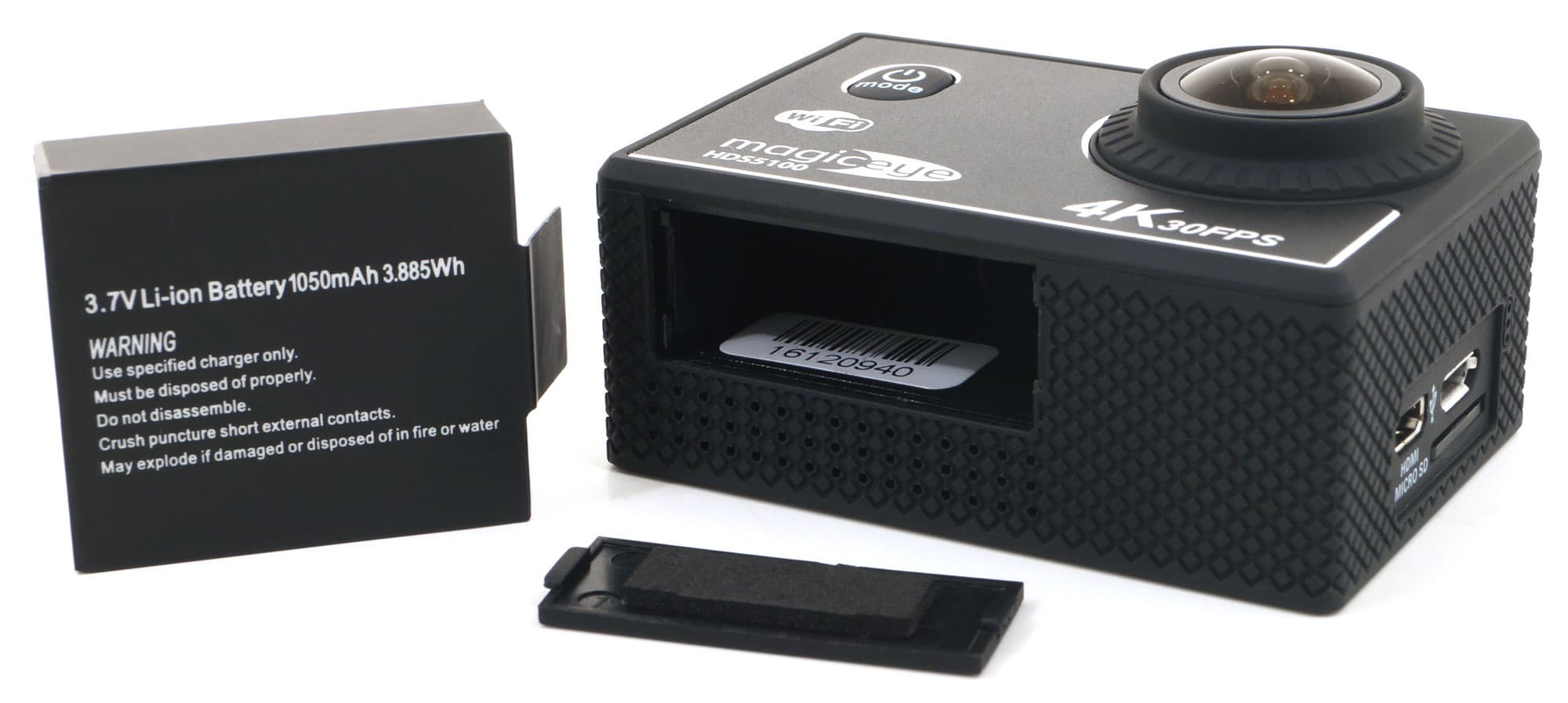 Камера снабжается сменным аккумулятором емкостью 1050 мАч. Этой энергии хватает на 88 минут беспрерывной видеозаписи в режиме 4K 30p с выключенным Wi-Fi, или до 92 минут в режиме 1080 60p также с выключенным Wi-Fi.