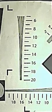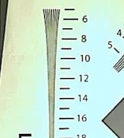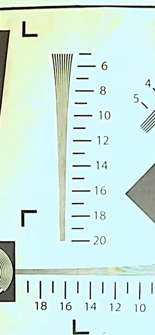 Разрешающая способность оказывается ожидаемой для экшн-камер среднего и низшего ценового диапазона, достигая 1100 ТВ-линий по горизонтали в 4K и 900 ТВ-линий в Full HD. В прочих режимах разрешающая способность не блещет цифрами — по всей видимости, это происходит вследствие не очень аккуратного изменения размера кадра при его формировании.