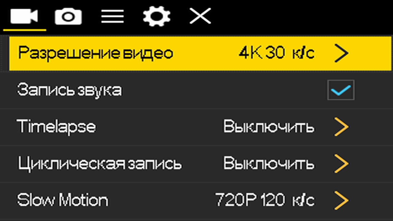| 1280×720 120p 30 Мбит/с | 1280×720 60p 30 Мбит/с | 1280×720 30p 30 Мбит/с | 1280x720 30p 120fps 8 Мбит/сек |